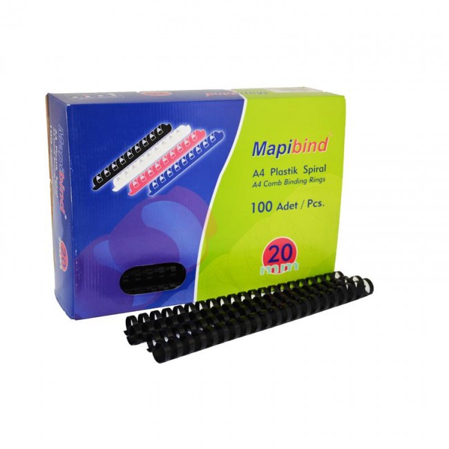 MAPIBIND 20MM PLASTIK SPIRAL SIYAH 100'LU (2012001)